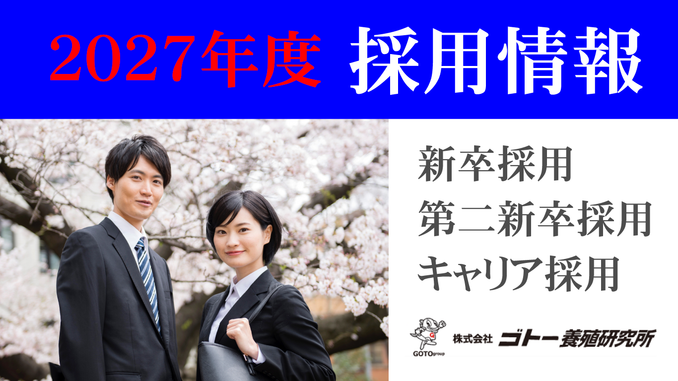 2027年度ゴトー養殖研究所新卒・第二新卒採用・キャリア採用について2025年12月1日ゴトー養殖研究所新着情報・お知らせゴトー養殖研究所では、2027年度の新卒・第二新卒採用・キャリア採用に関する募集… Read More→