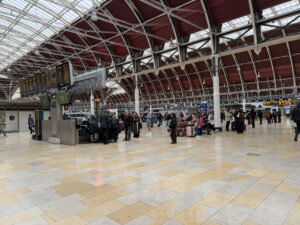 ホテルのあるパディントン駅から、ユーロスターの発着駅であるセント・パンクラス駅へ向かいました。天気が悪いことで知られるロンドンですが、滞在3日目にしてようやく青空と太陽を見ることができました(数分)。